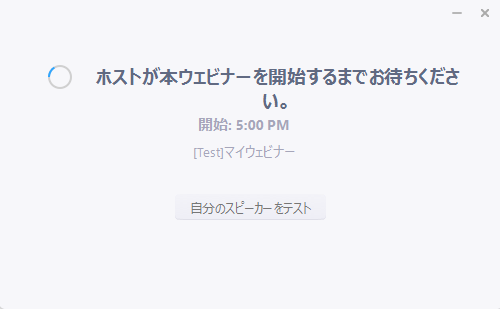 ホストがウェビナーのブロードキャストを開始していない場合や、実践セッションを使って準備している場合は、次のメッセージが表示されます。